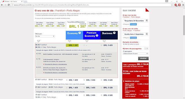 *Captura de tela do Site da Air France e TAM